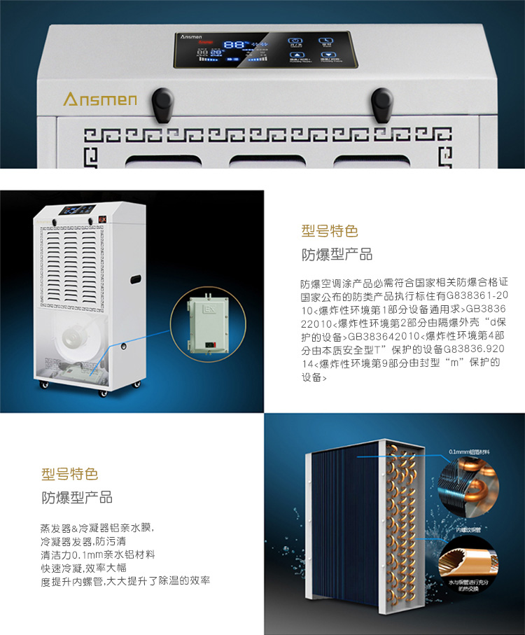 安詩曼是專業(yè)防爆工業(yè)除濕機(jī)生產(chǎn)廠家,主要產(chǎn)品有工業(yè)除濕機(jī),高溫烘干機(jī),轉(zhuǎn)輪除濕機(jī),低溫除濕機(jī),吊頂除濕機(jī),商用抽濕機(jī),商用除濕機(jī),工業(yè)抽濕機(jī),工業(yè)干燥機(jī)等產(chǎn)品